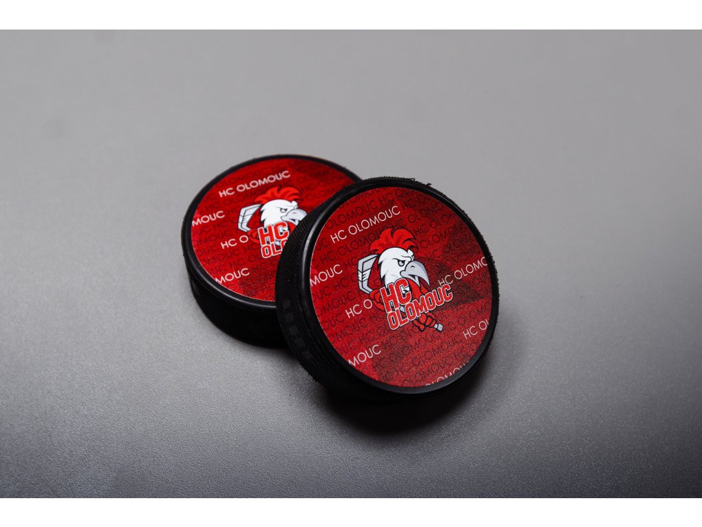 Neztratíš ho na ledě ani doma. Červený puk s logem HC Olomouc pro každého fanouška i sběratele.